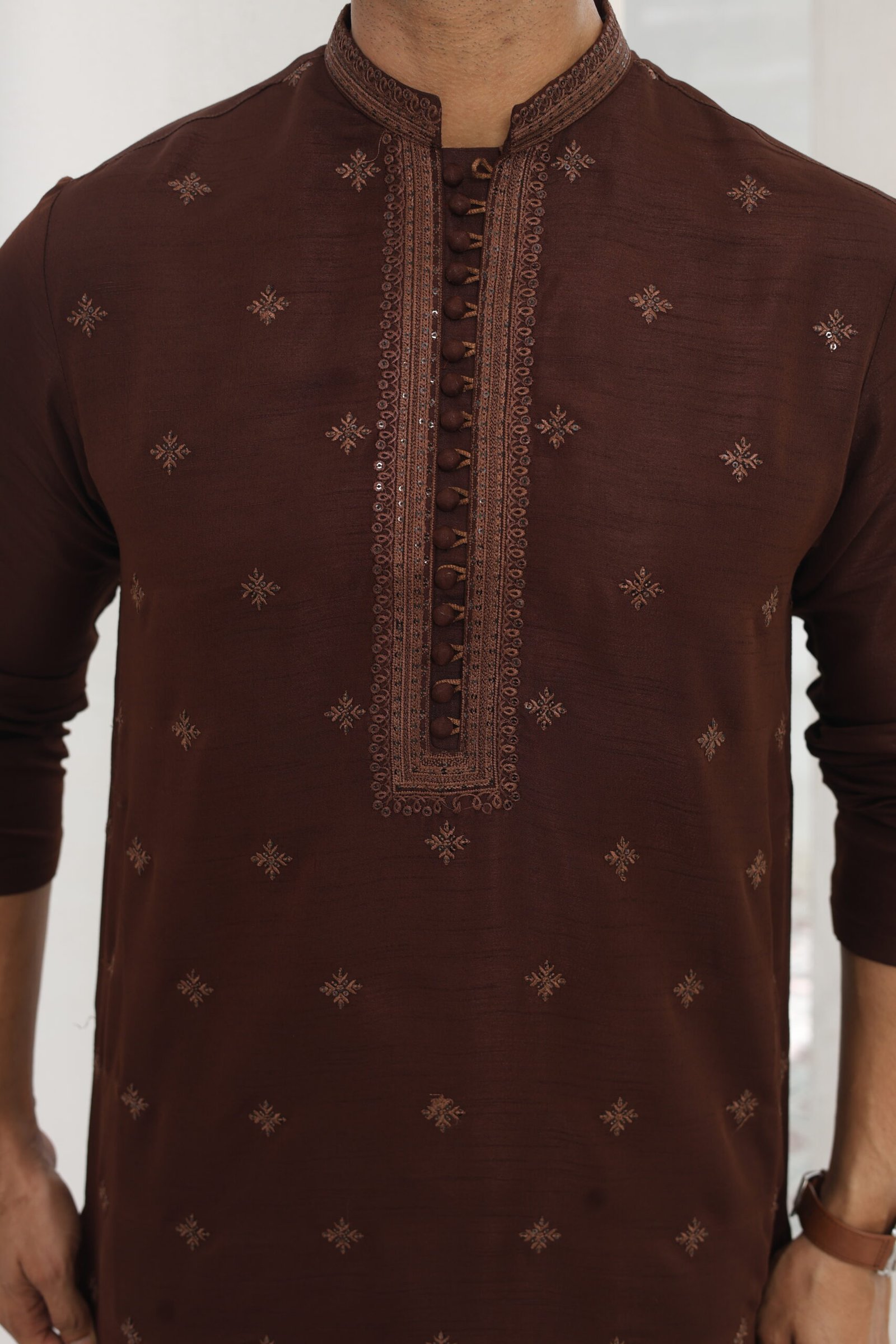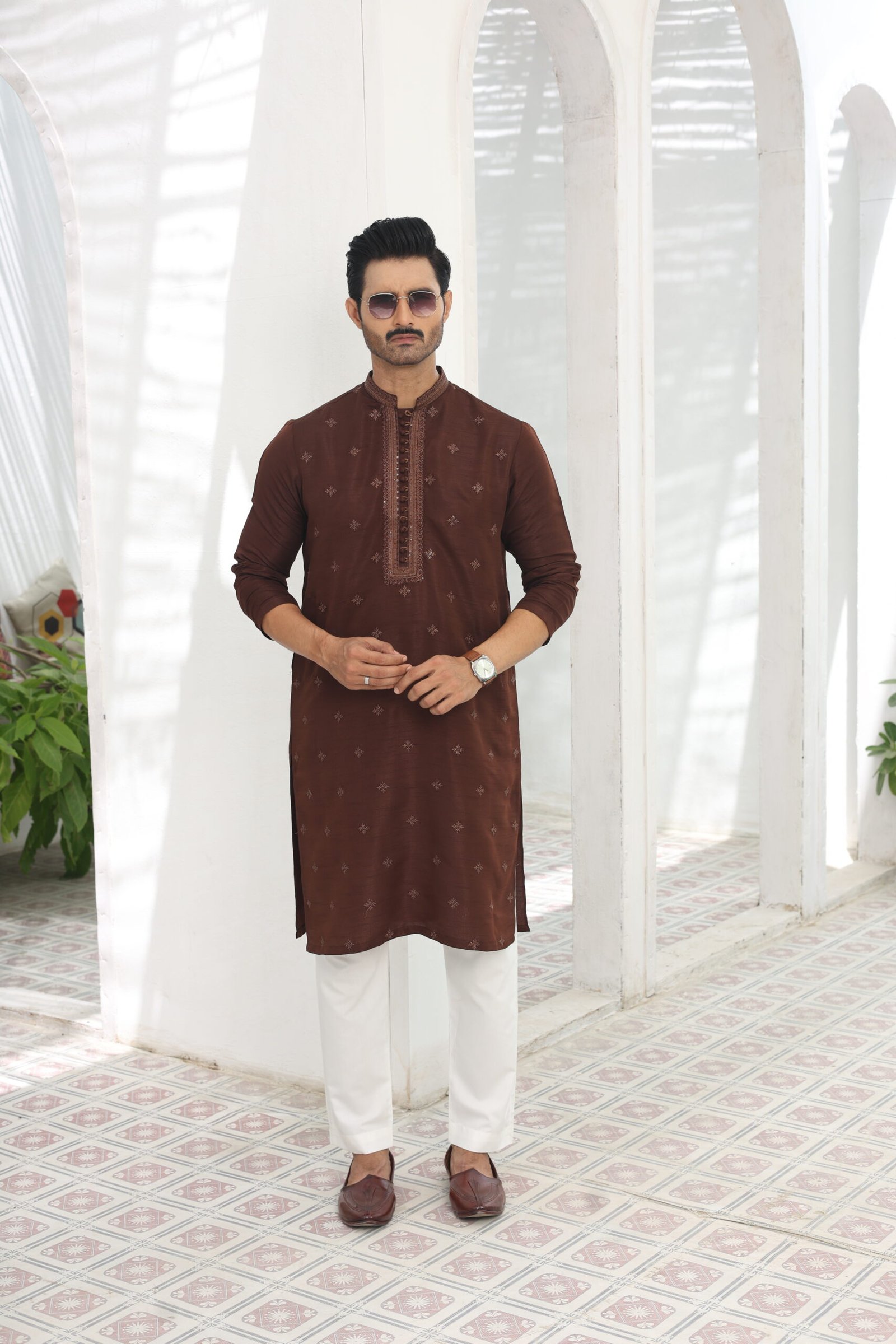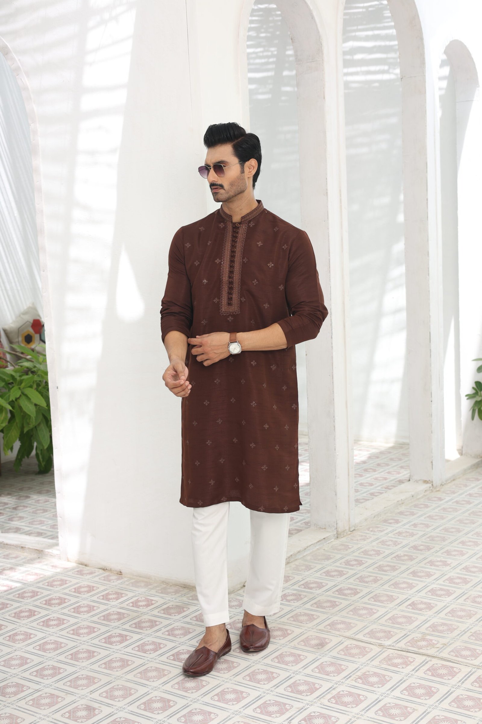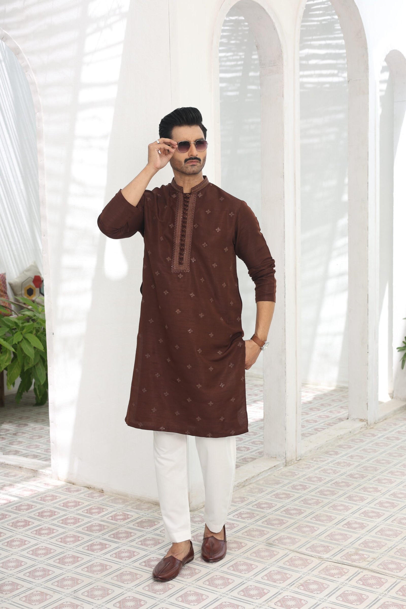 Men’s Formal Computer Embroidered Raw Silk Kurta Pyjama