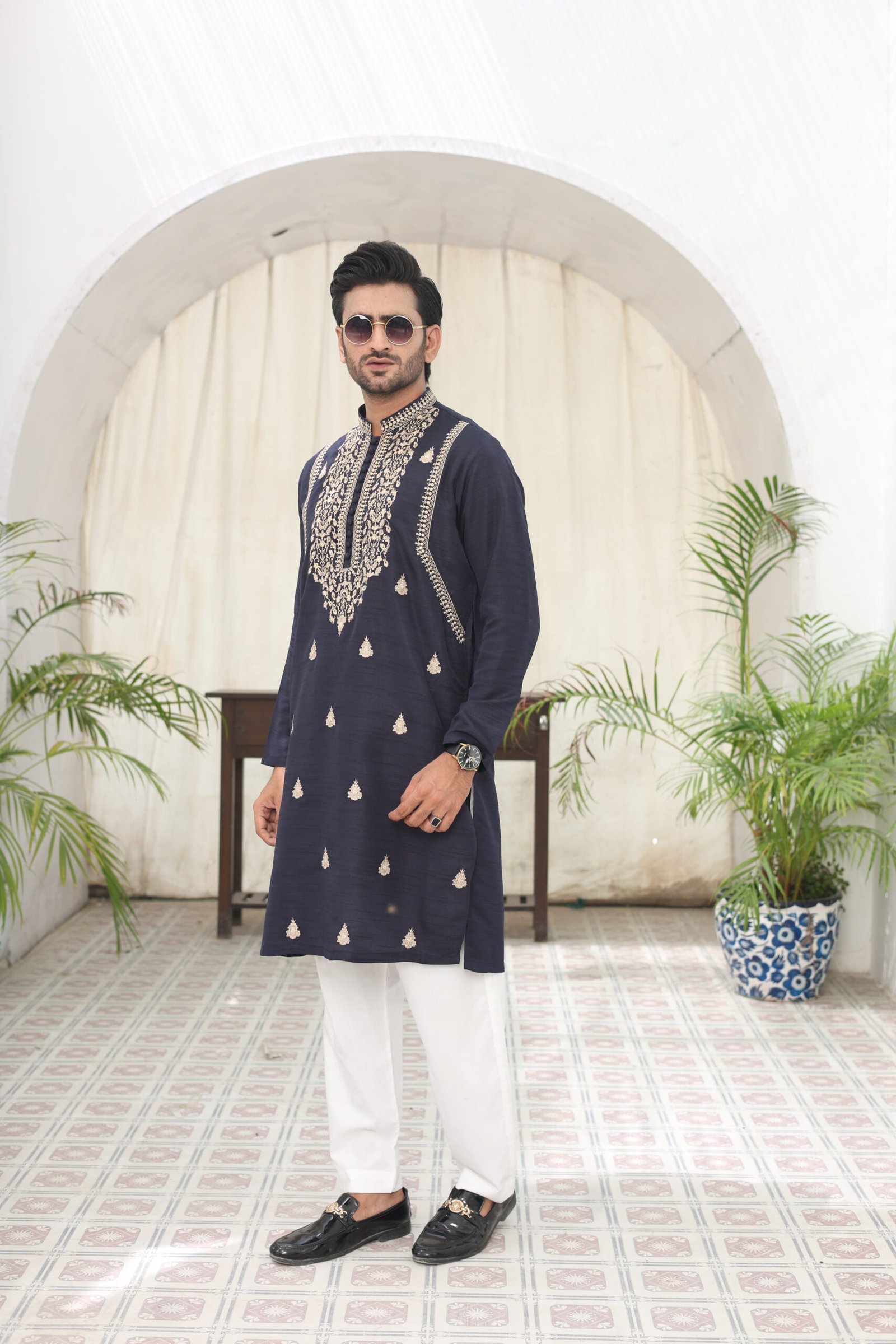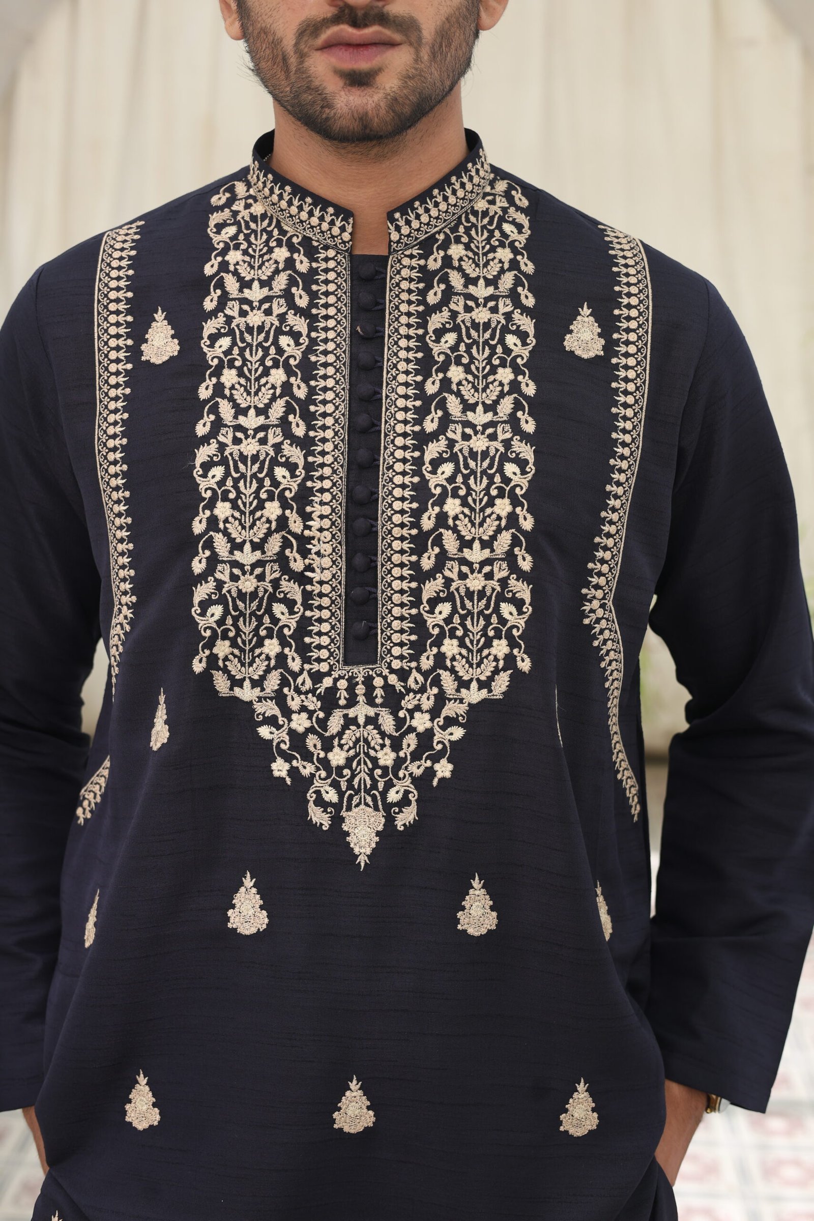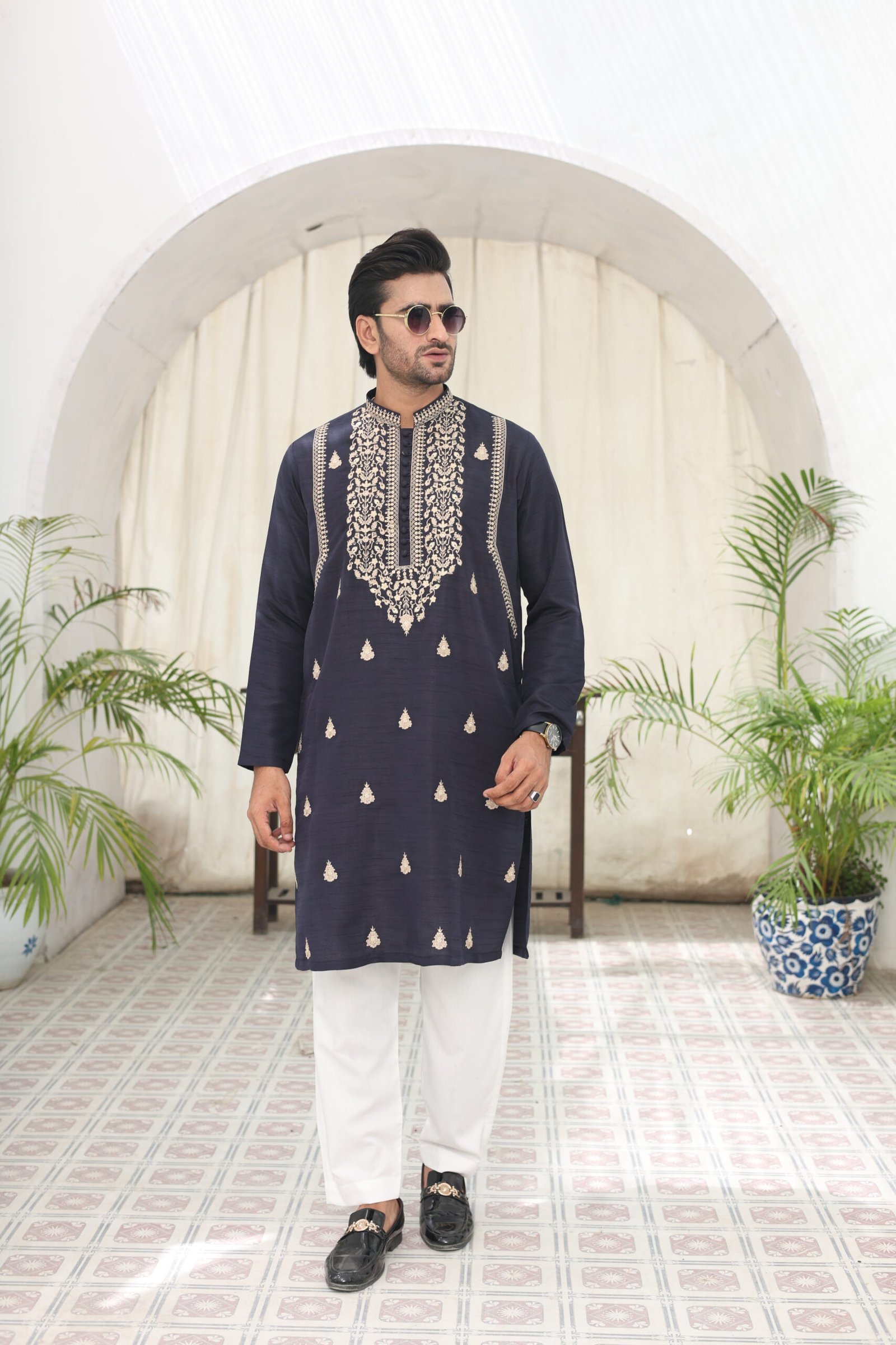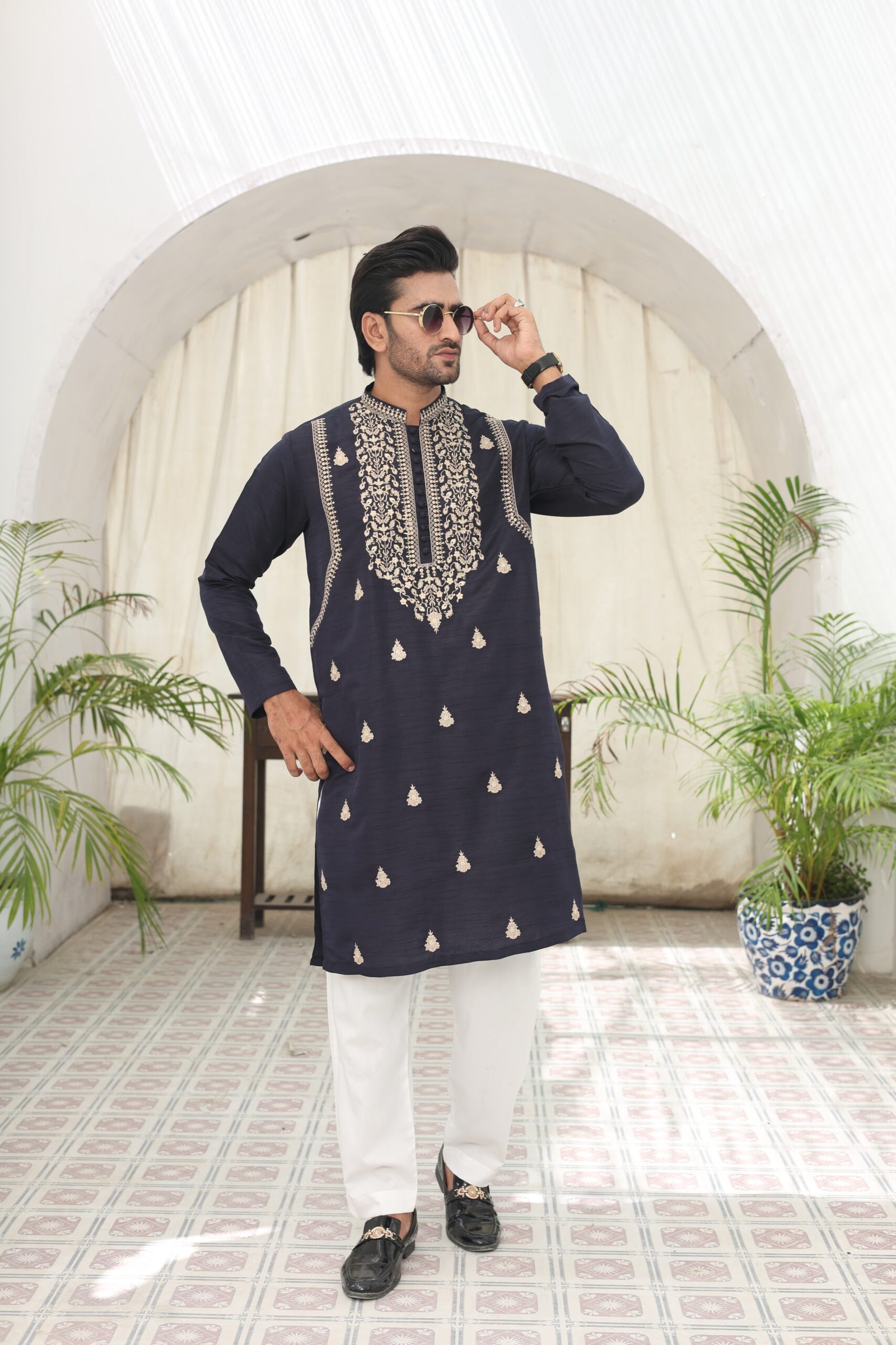 Men’s Formal Computer Embroidered Raw Silk Kurta Pyjama