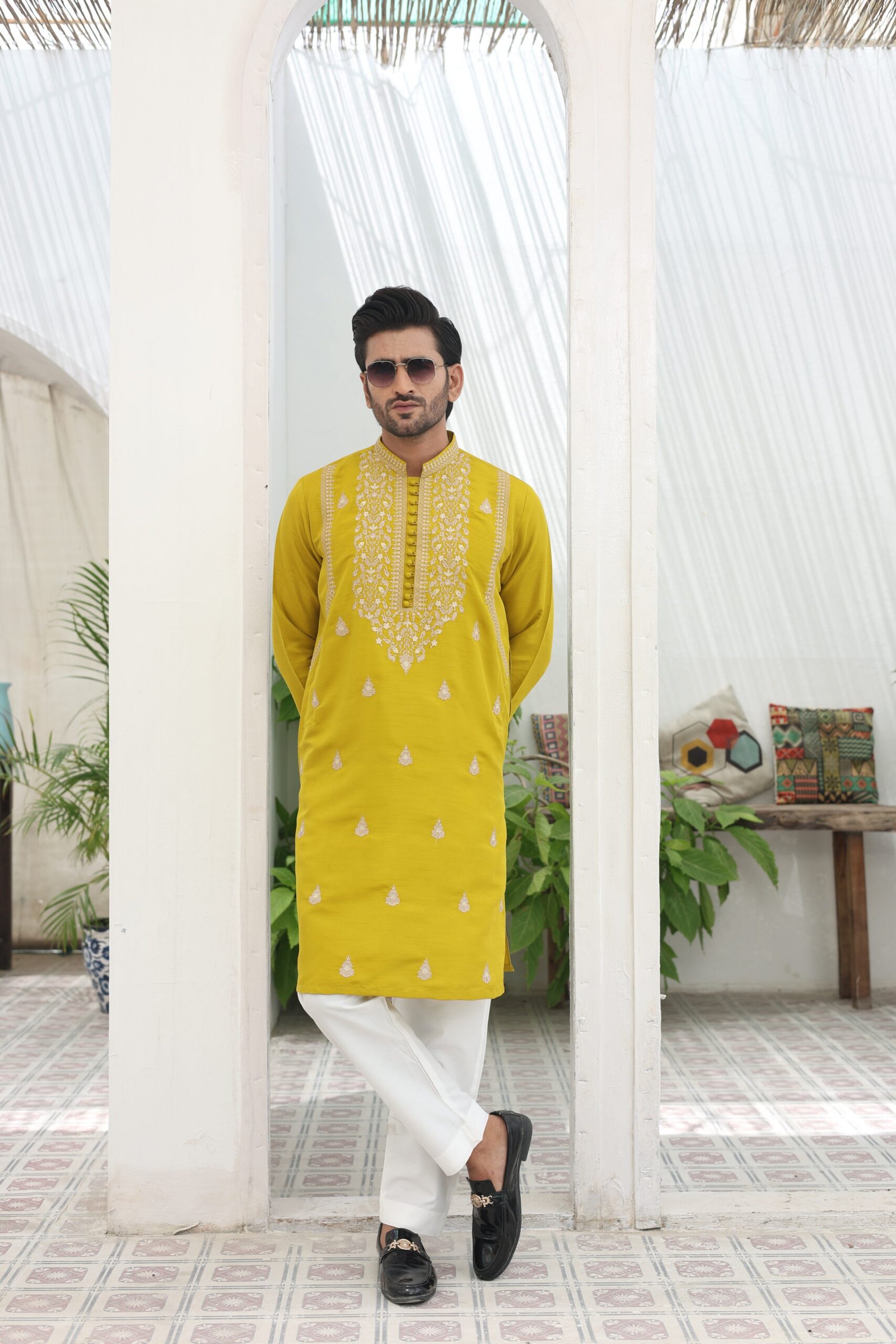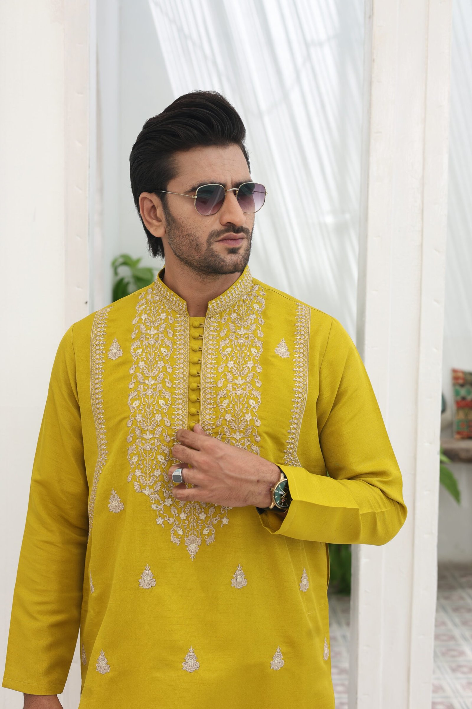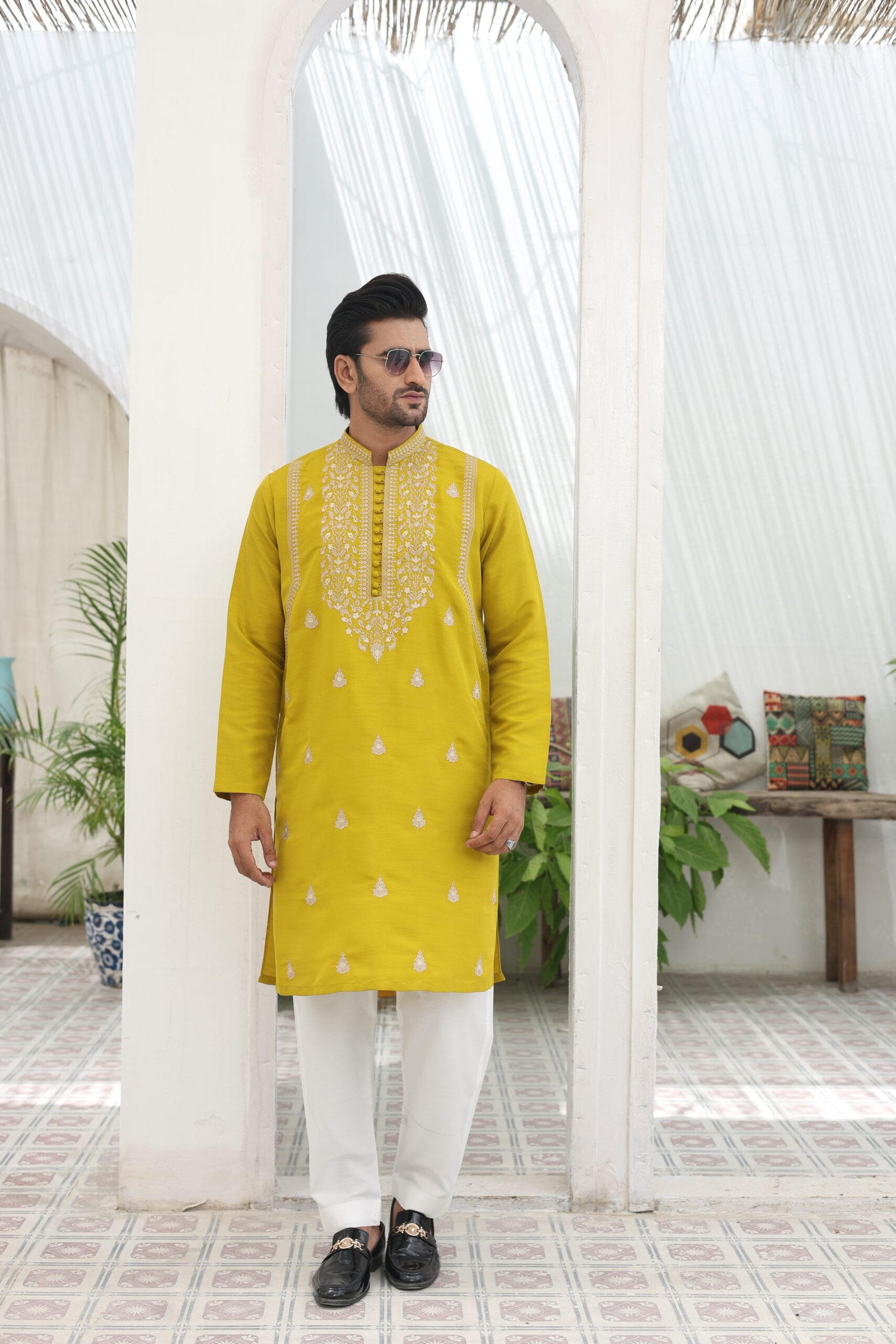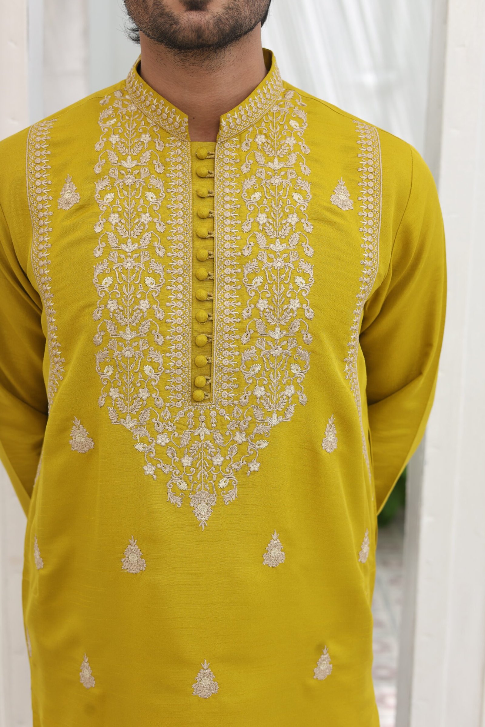 Men’s Formal Computer Embroidered Raw Silk Kurta Pyjama