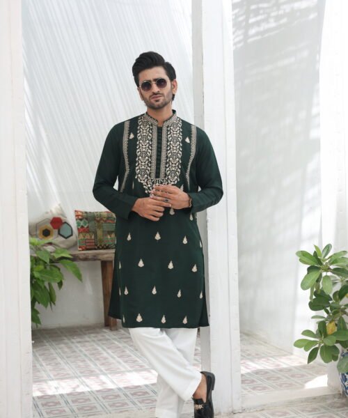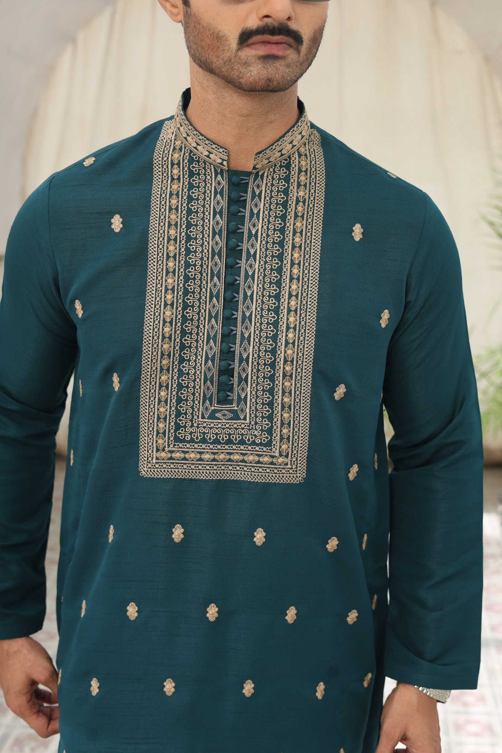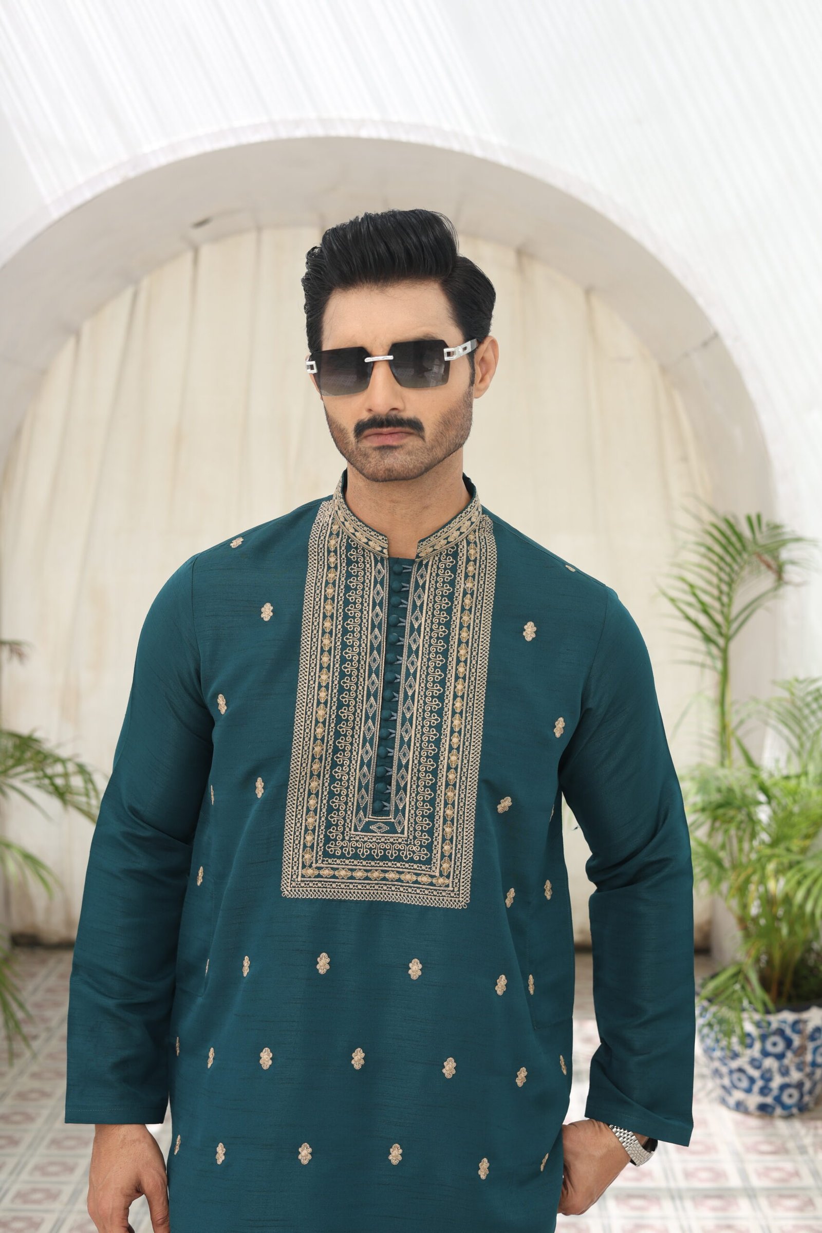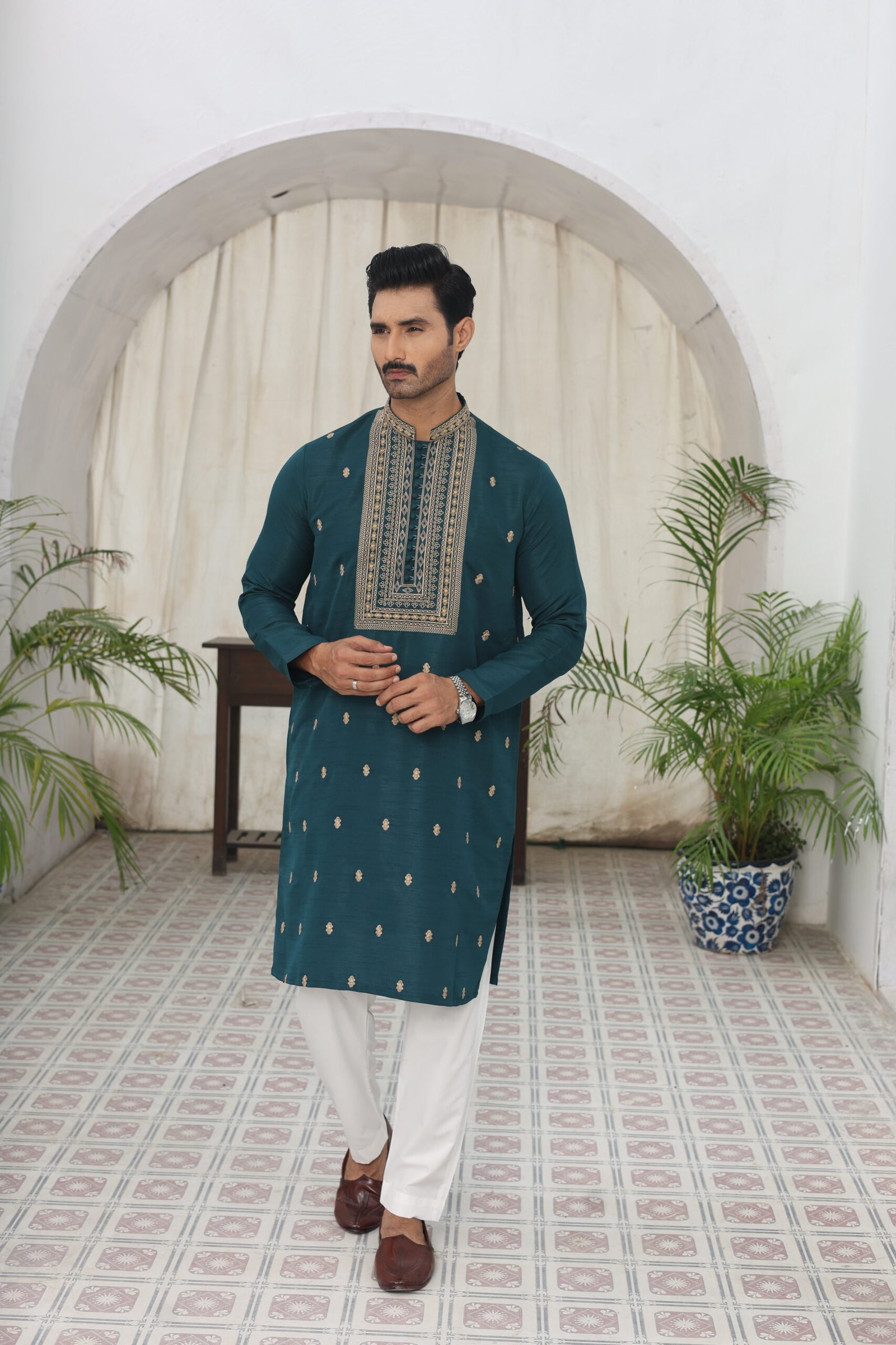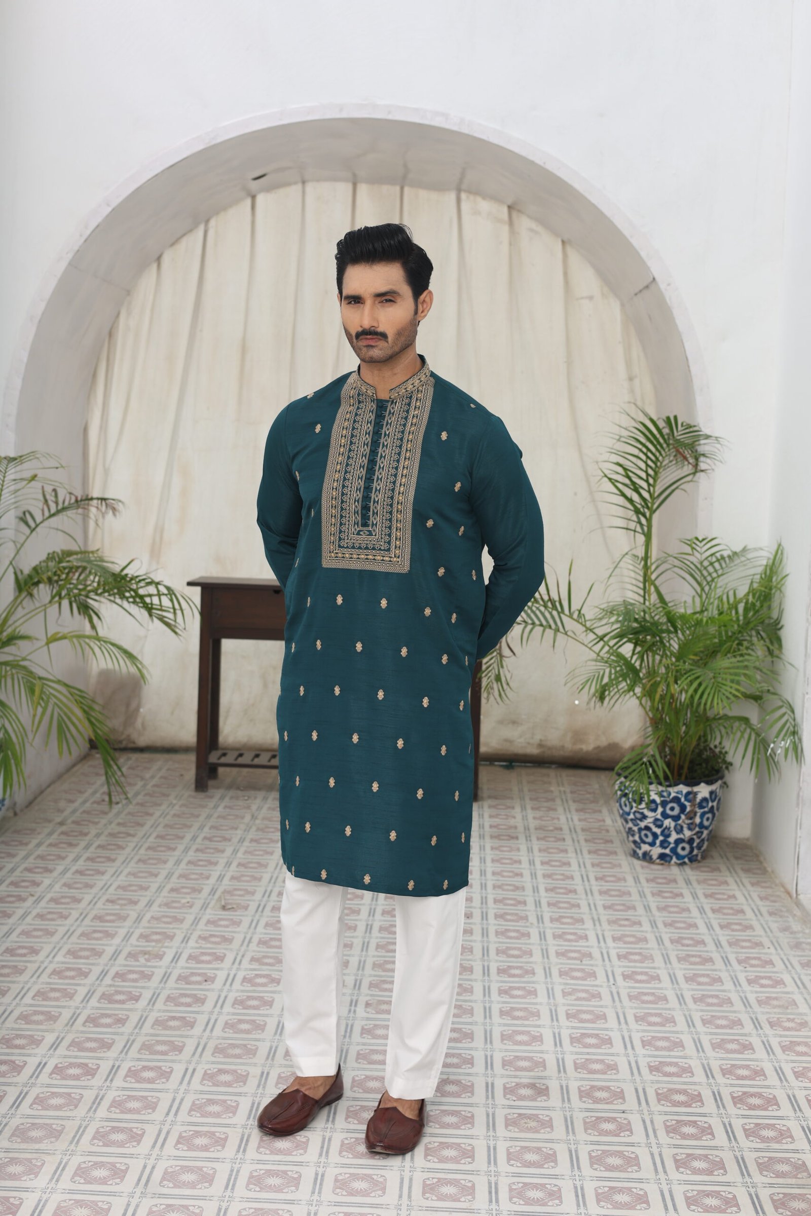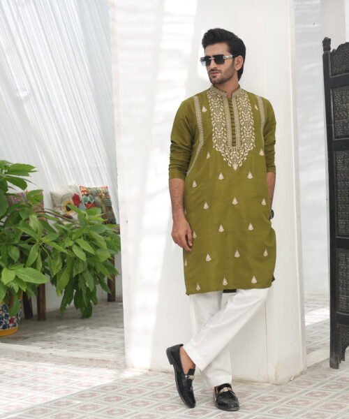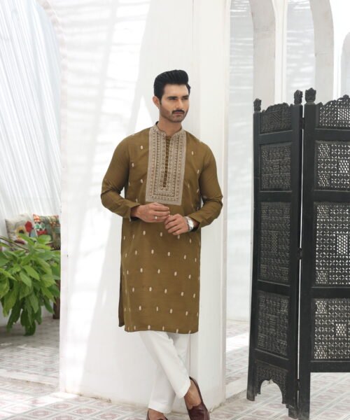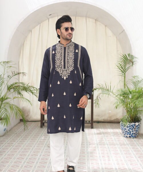 Men’s Formal Computer Embroidered Raw Silk Kurta Pyjama