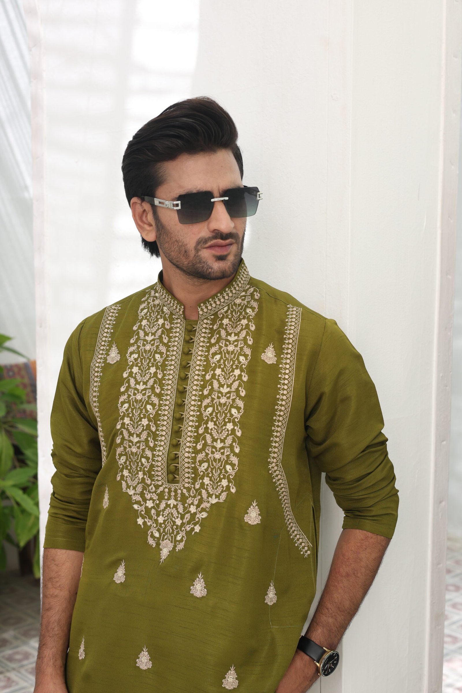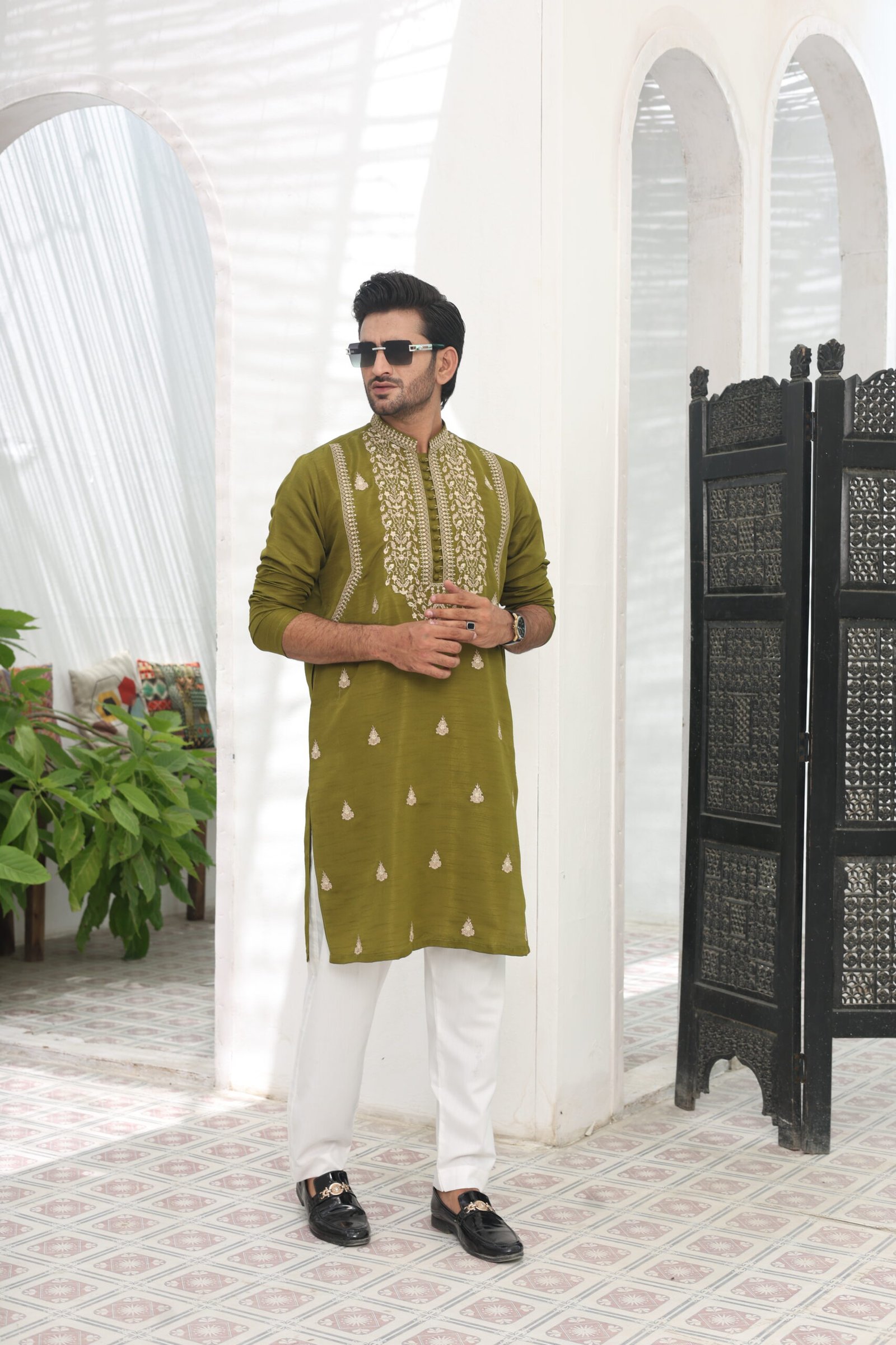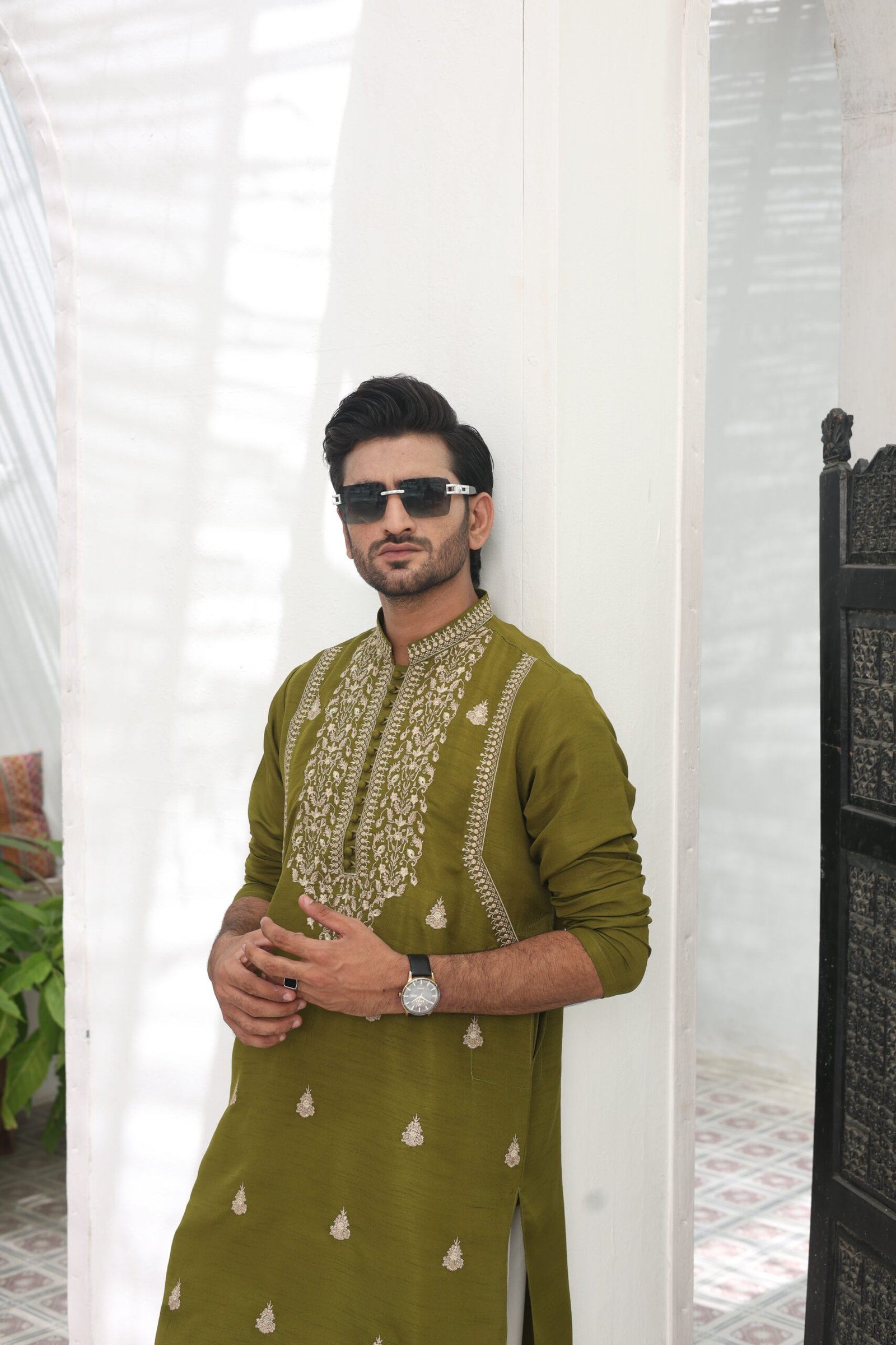 Men’s Formal Computer Embroidered Raw Silk Kurta Pyjama