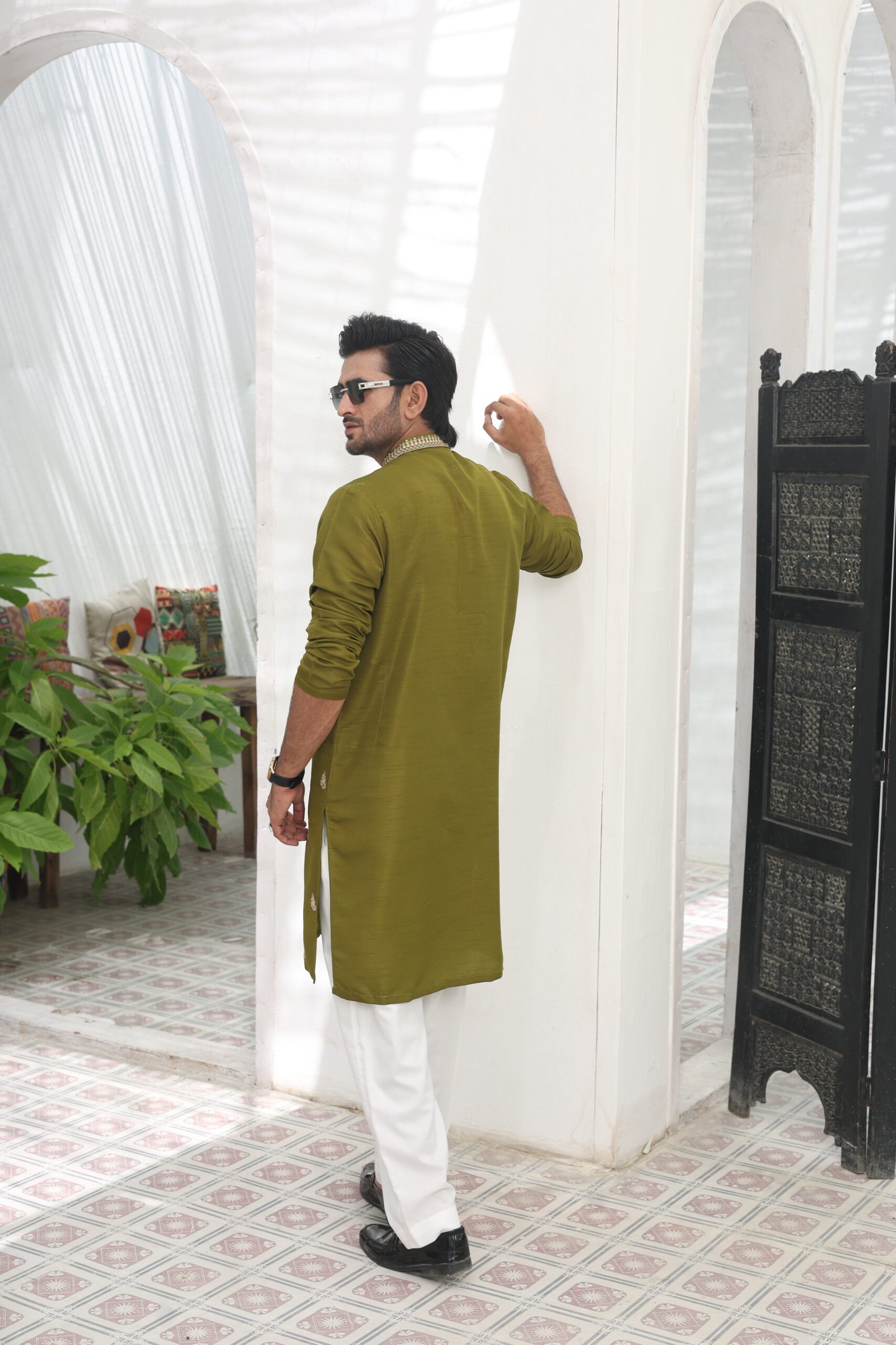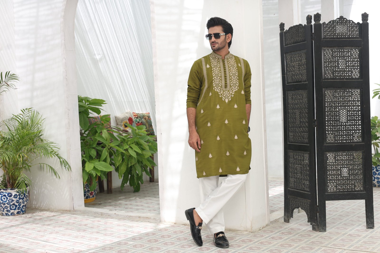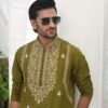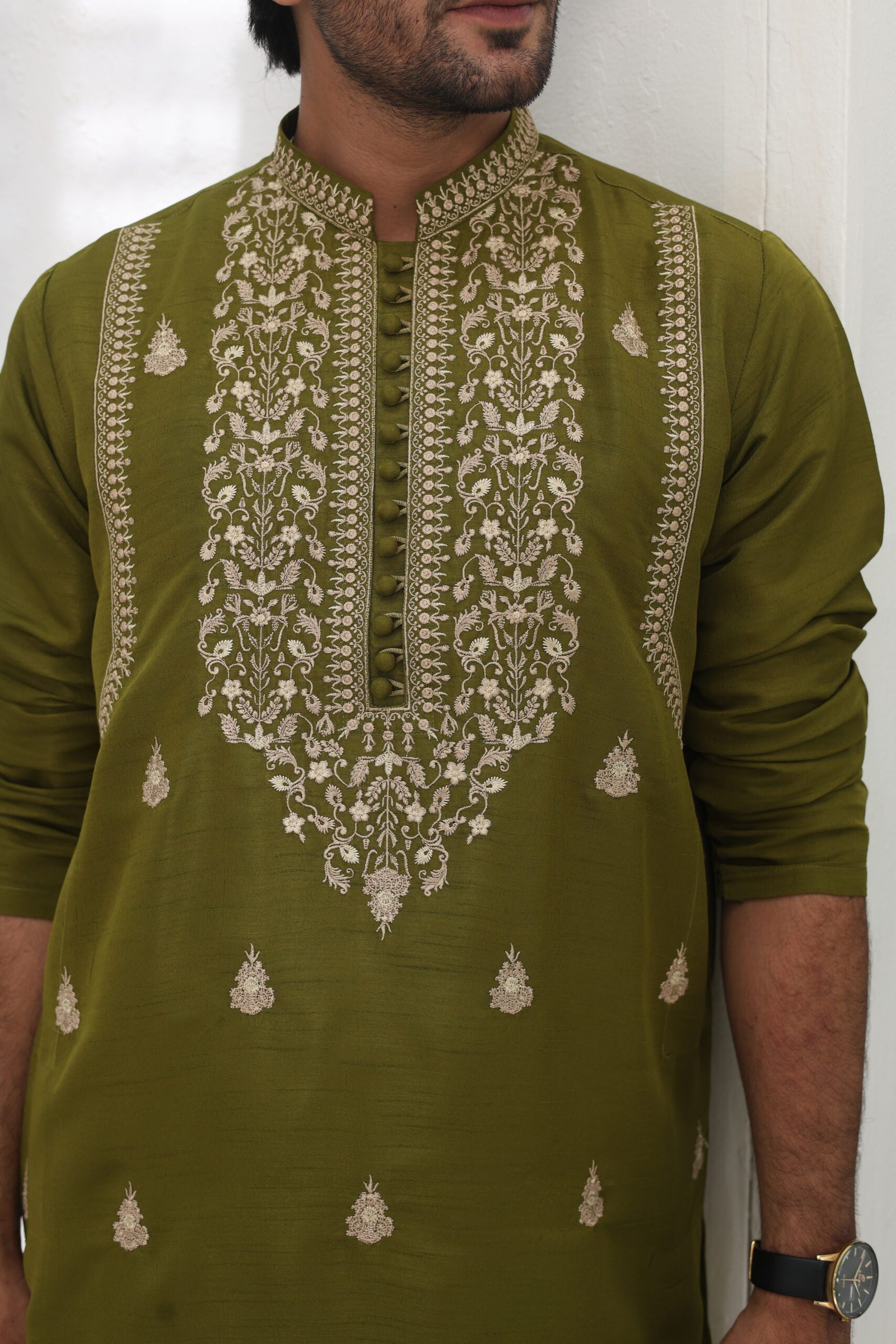 Men’s Formal Computer Embroidered Raw Silk Kurta Pyjama