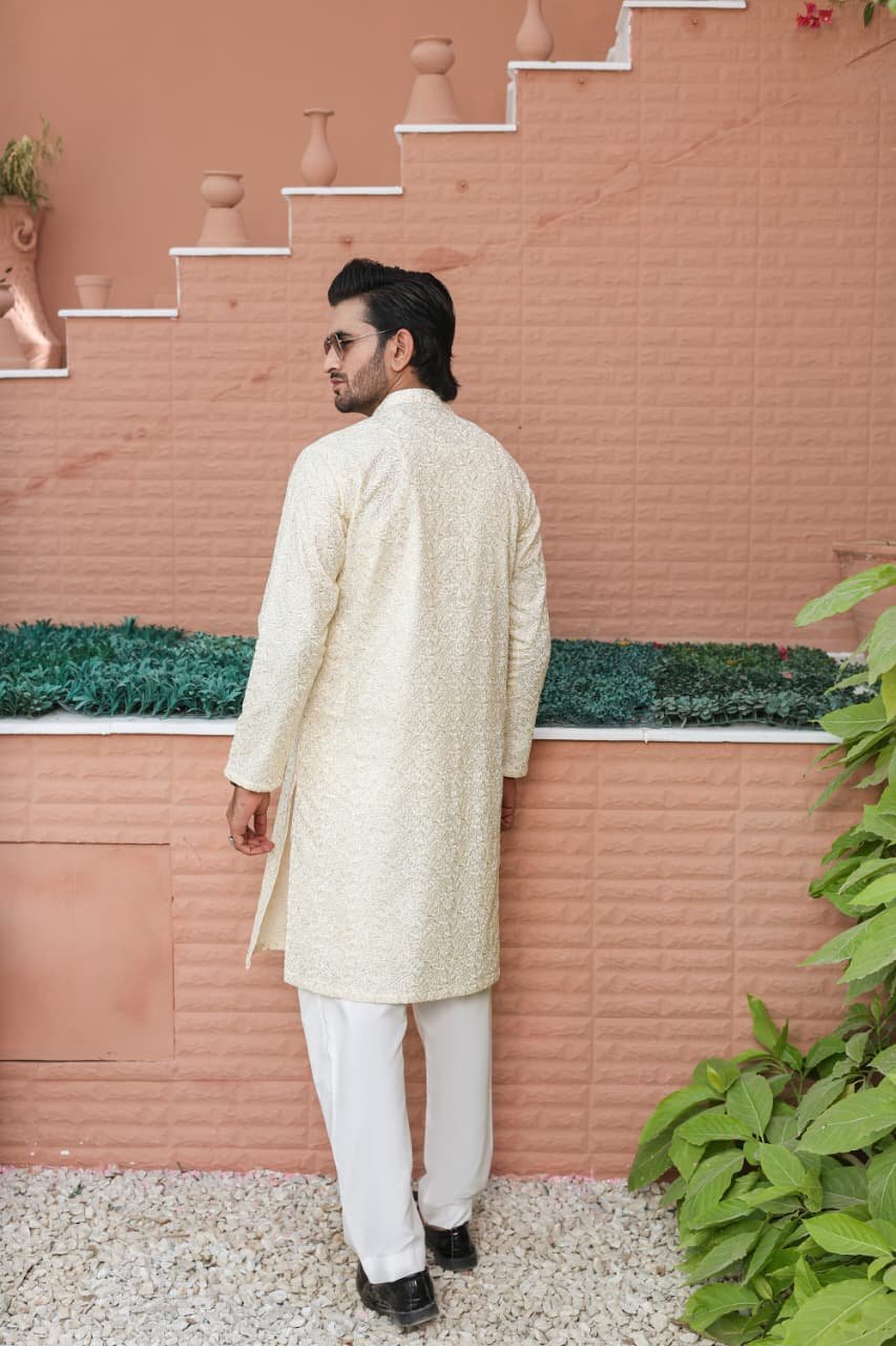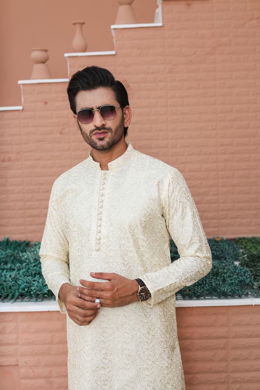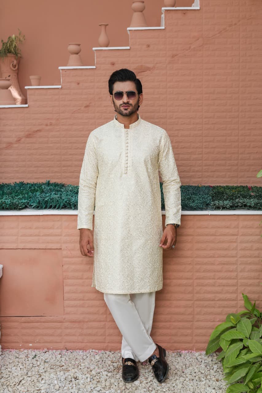 Men’s Formal Computer Embroidered Raw Silk Kurta Pyjama