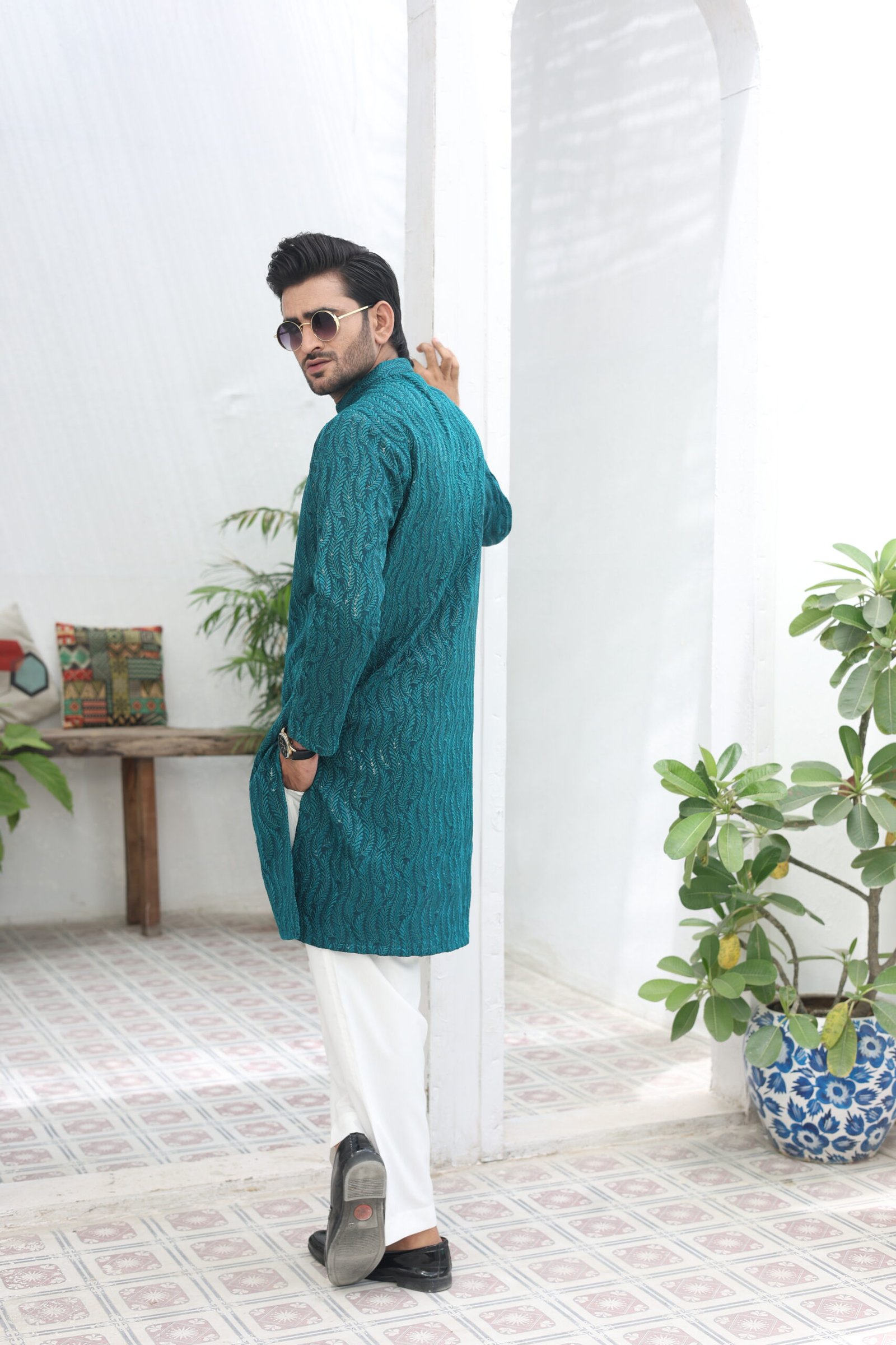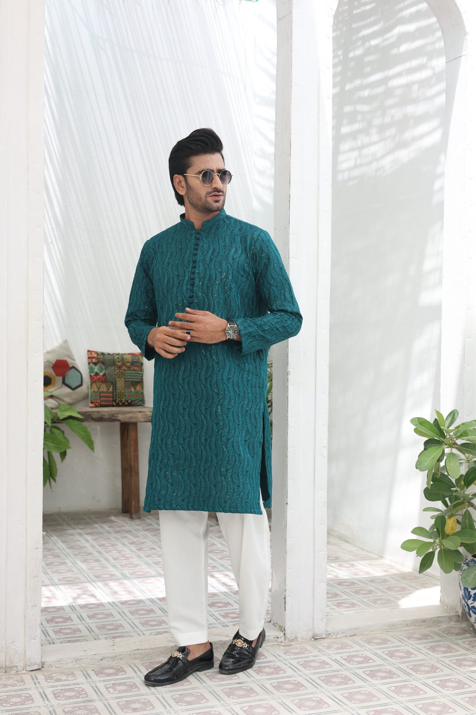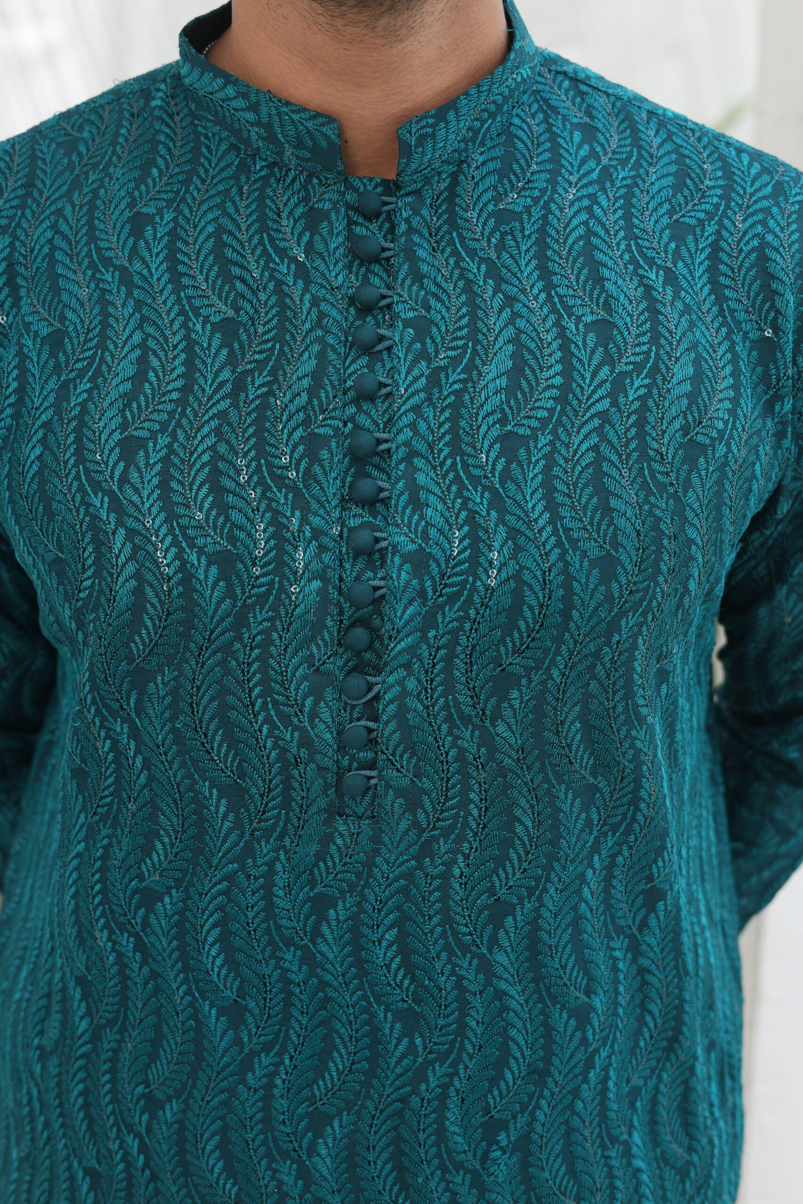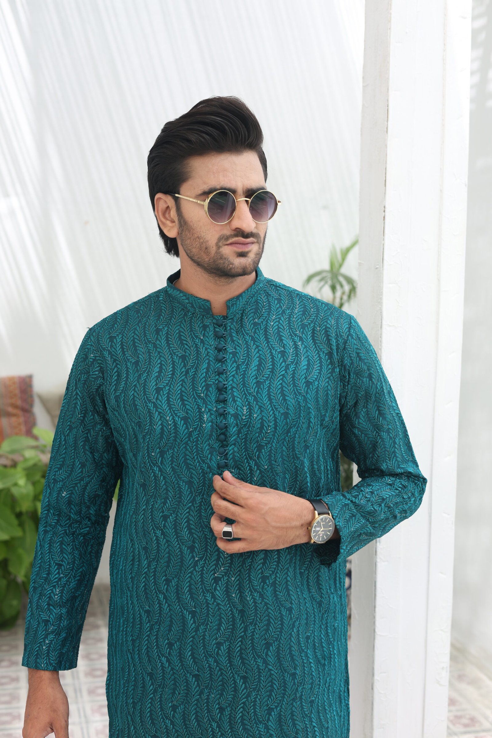 Men’s Formal Computer Embroidered Raw Silk Kurta Pyjama