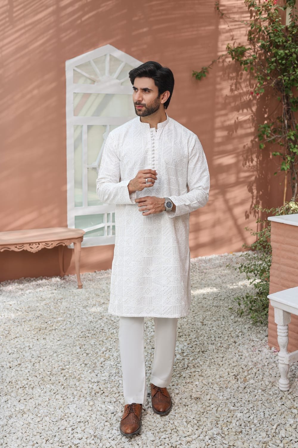 Men’s Formal Computer Embroidered Raw Silk Kurta Pyjama